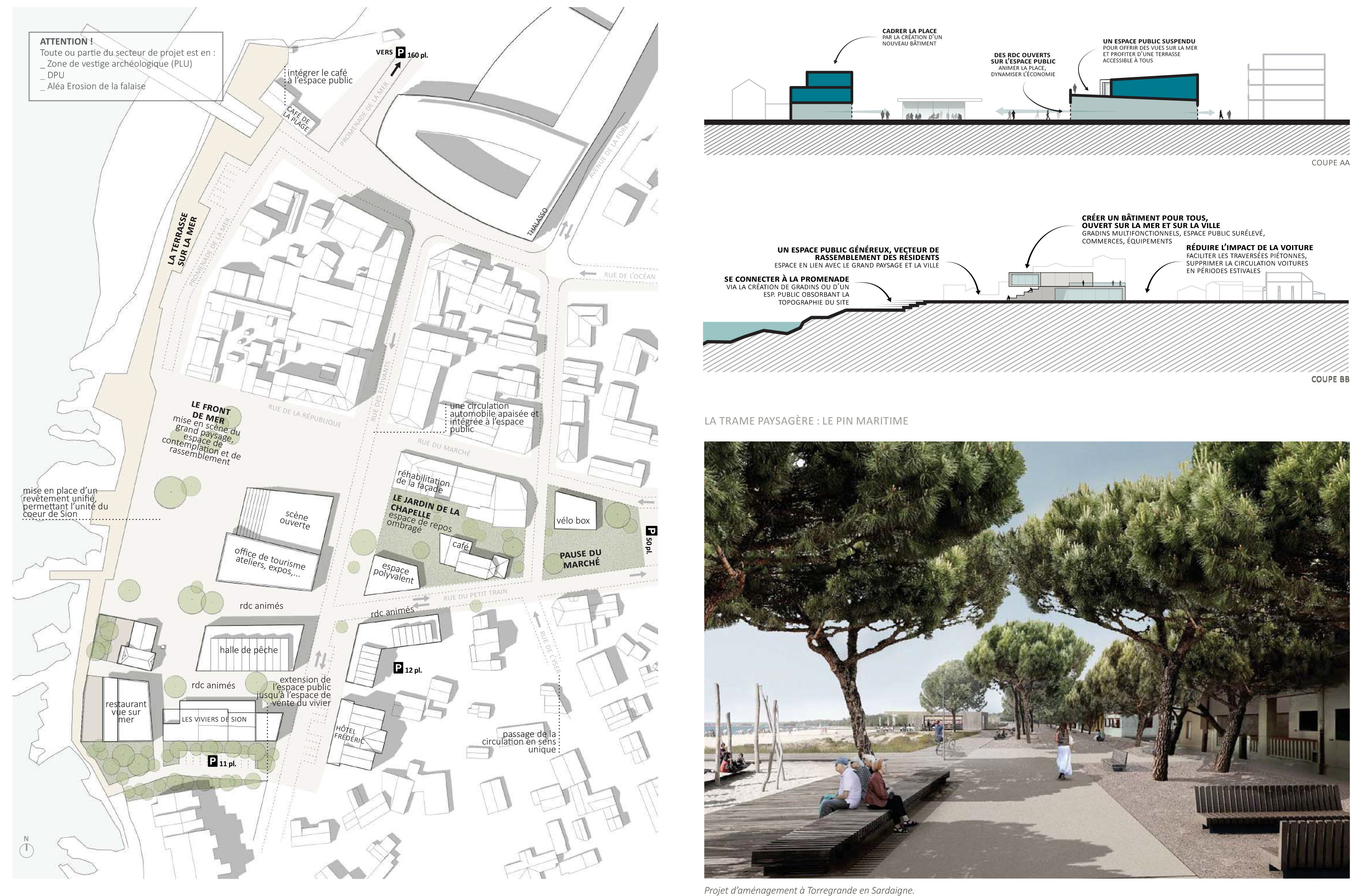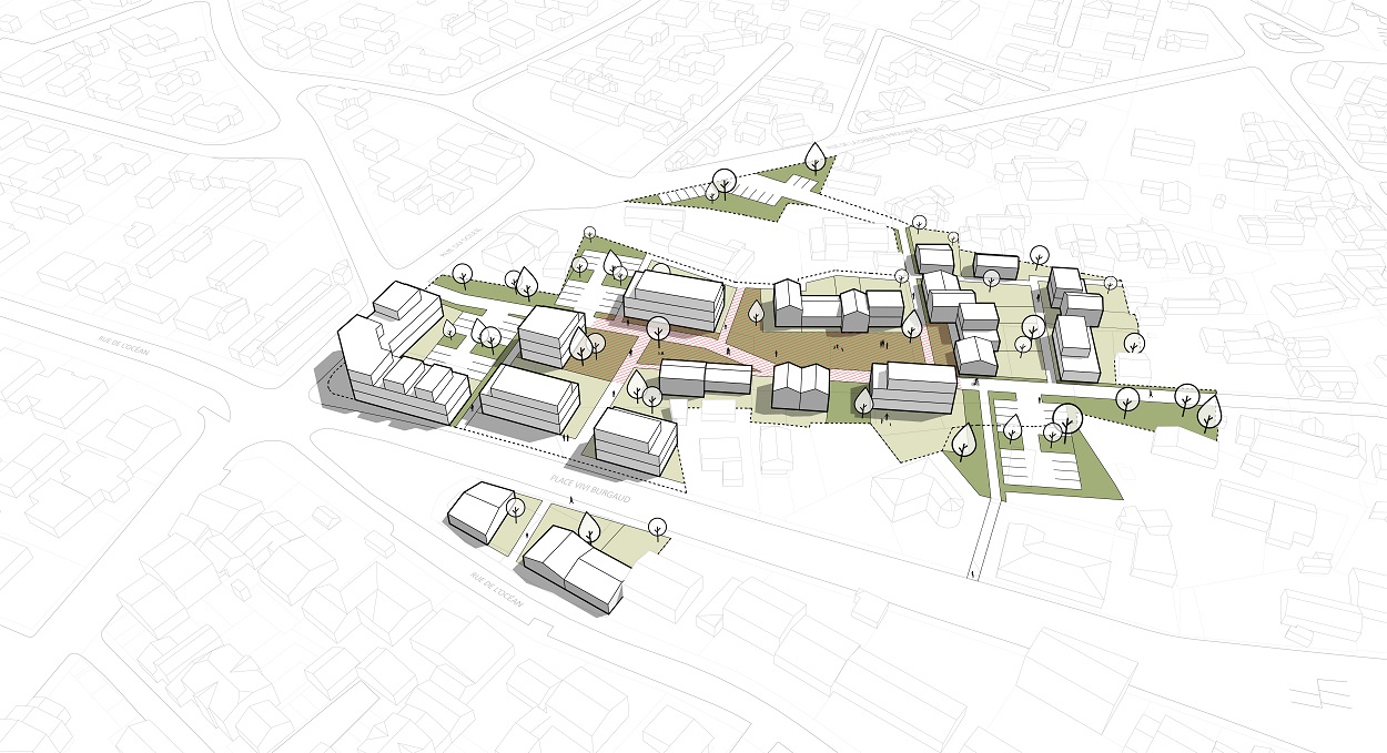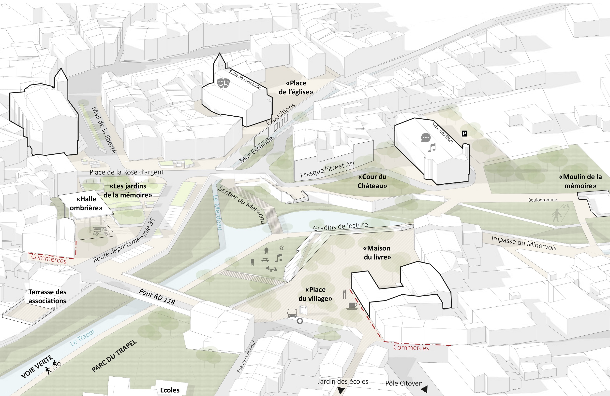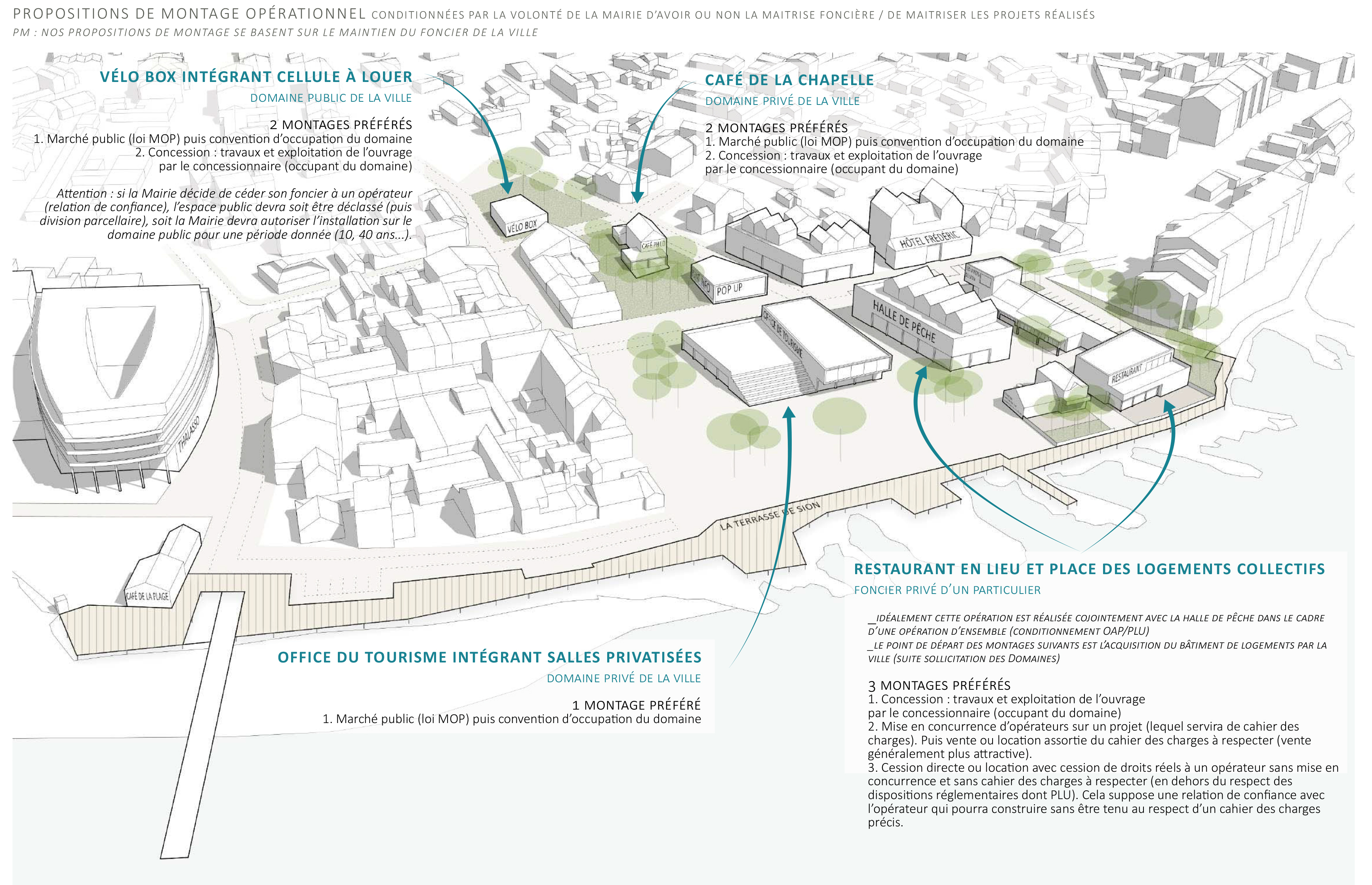 _ Conception architecturale 3 scenarii (Esquisses) et aménagement des espaces publics
