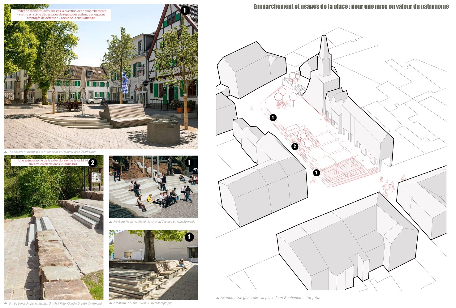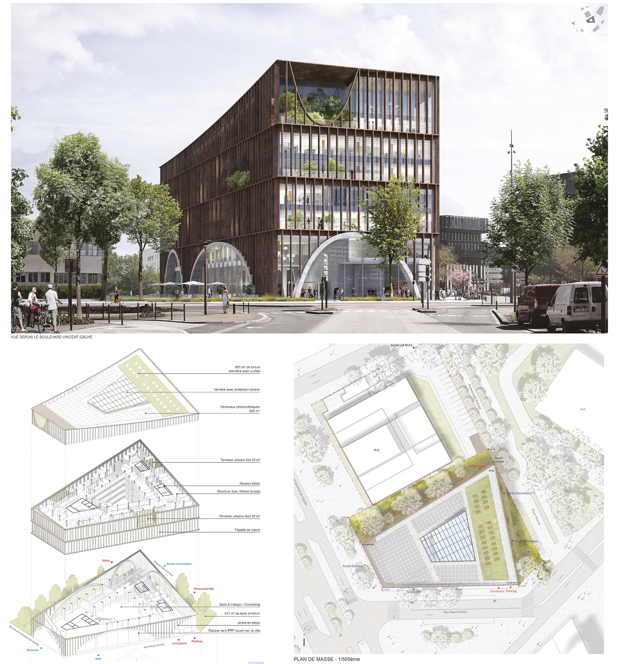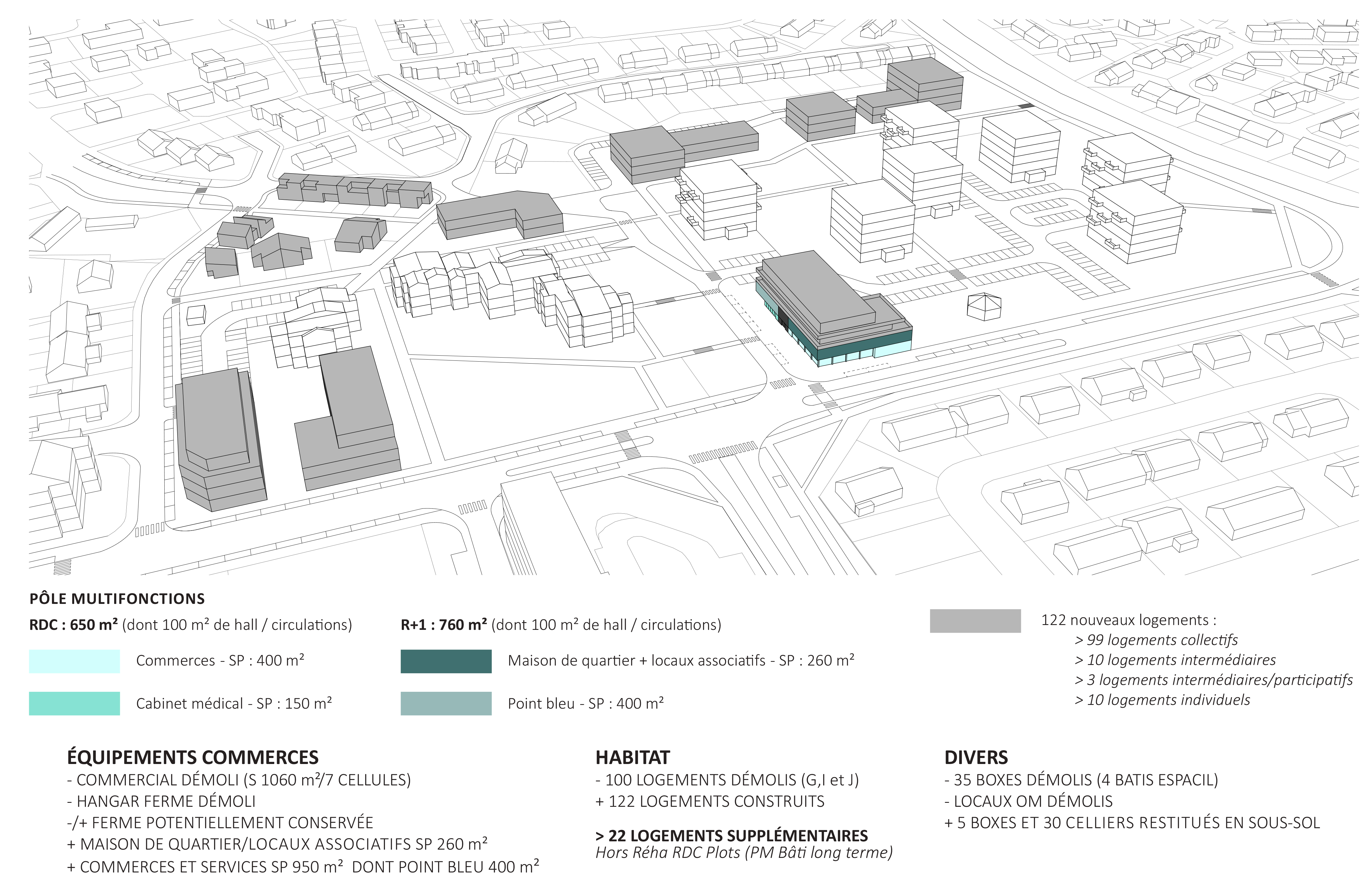 _ Conception architecturale 3 scenarii (Esquisses) et aménagement des espaces publics