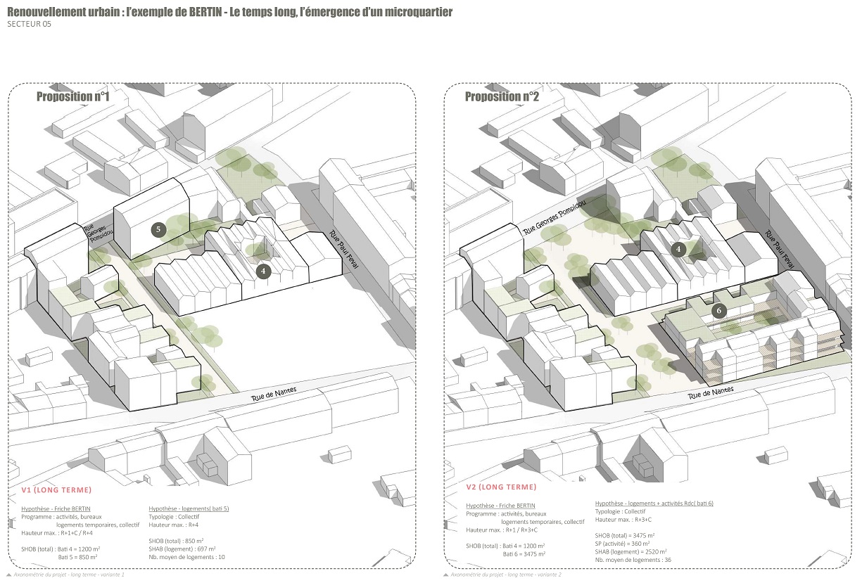 _ Conception architecturale 3 scenarii (Esquisses) et aménagement des espaces publics
