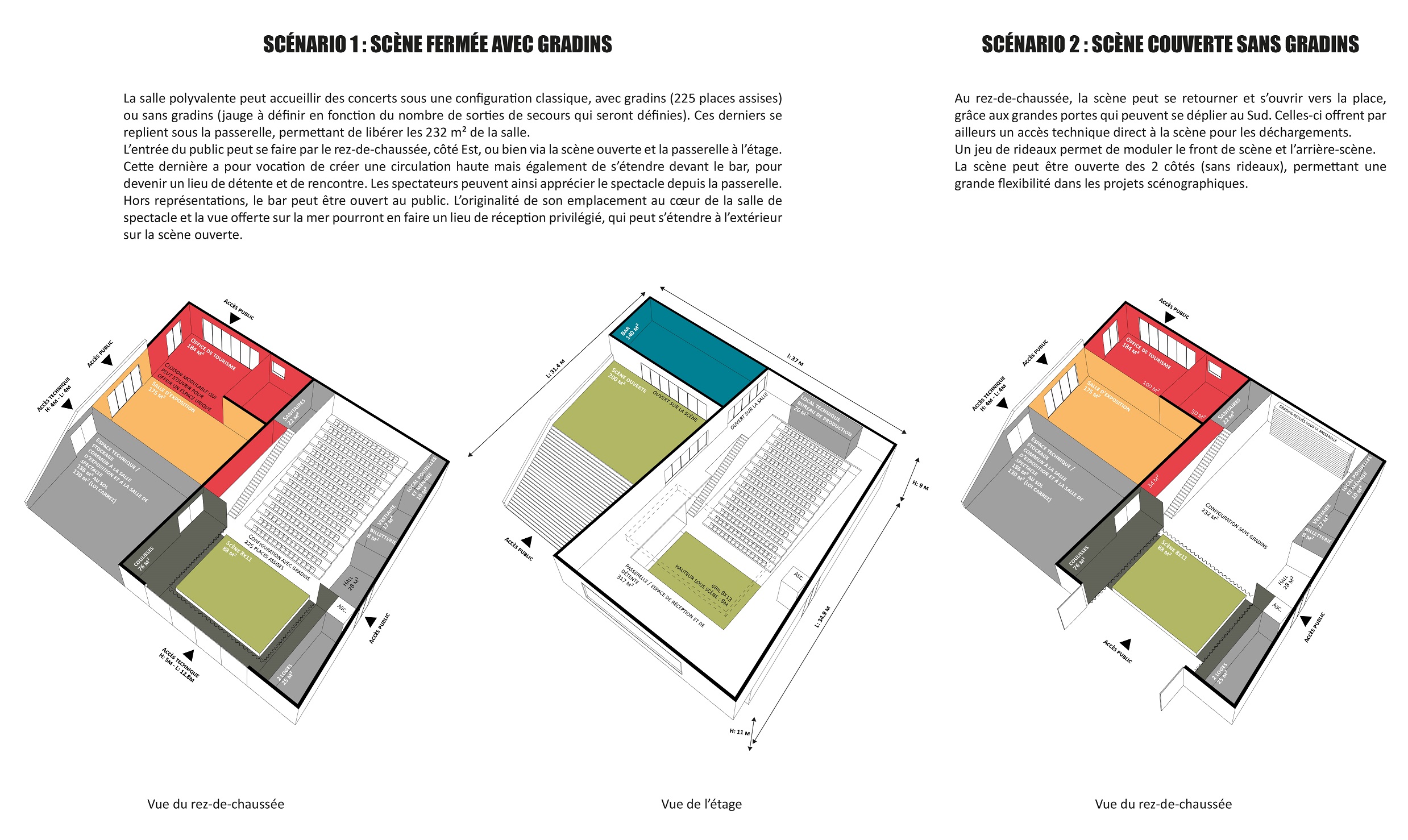 vocations multiples (théâtre, brasserie et salle d'exposition mutable) en plein coeur de